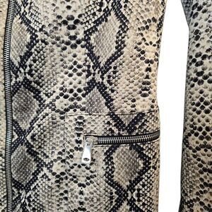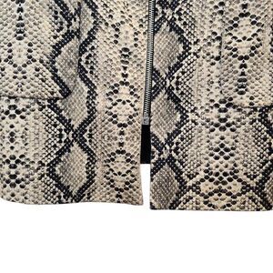 Zara, Modern, Collarless, Cotton, Polyester, Elastane, Full Zip, Pockets, Long Sleeve, Animal Print, Longline Coat, Workout, Fall, Spring, Winter. Zara Snakeskin Collarless Jacket Women's Small Long Sleeve Full Zip Longline Coat.