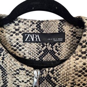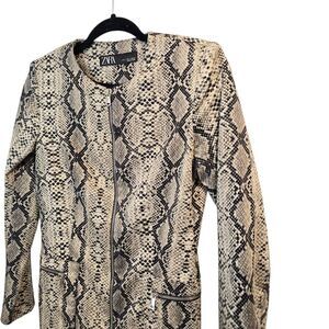 Zara Snakeskin Collarless Jacket Womens Small Long Sleeve Full Zip Longline Coat