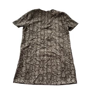 Zara Snakeskin Print Jacquard Dress Boxy Mini Short Sleeve Tan Brown L EUC