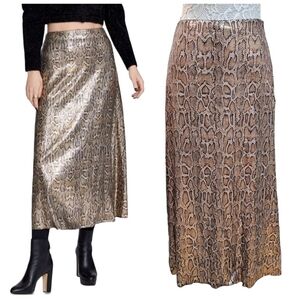 Zara Snakeskin Python Sequined Full Length Skirt. All Over Sequined Snakeskin Print Lined Full Length Side Zip Closure Condition: Excellent Preowned Condition Size Small waist: 14.5" length: 34"