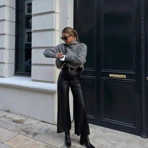 Zara Soft Knit Oversized Slouchy Turtleneck Sweater Heather Grey Sz Medium