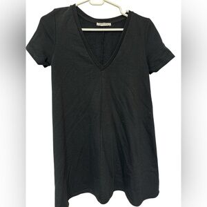 Zara Solid Black V-neck Short Sleeve Unhemmed Pullover Shirt Dress. Size small.