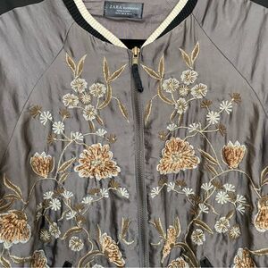 Zara Special Edition Gray and Black Floral Embroidered Bomber Jacket Size Medium