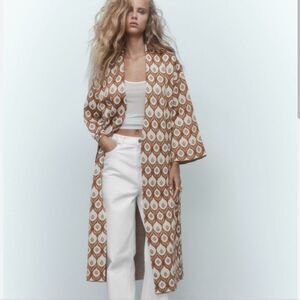 Zara Special edition Jacquard knit jacket M Brown Multi Nwot