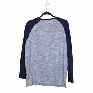 Blue color block, long sleeve, raglan t shirt. Preowned but in good condition. 100% cotton.