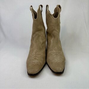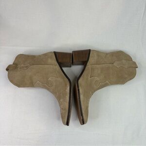 Zara Split Suede Embroidered Heel Cowboy Boot Tan 10
