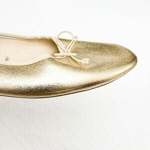 Zara Square Toe Flat Sandal Bow Front Accent Metallic Gold Size 36 EUC