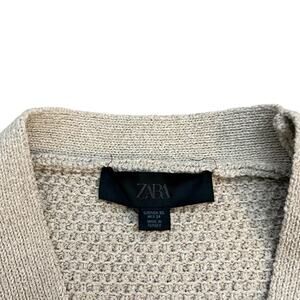 Zara Starfish Button Cardigan XS Tan Short Sleeve Cropped Textured Knit Coastal