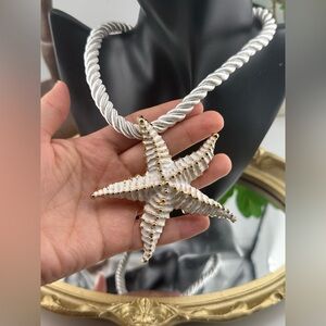 Turn heads with this eye-catching starfish pendant necklace, the ultimate statement piece for ocean lovers and bold fashionistas. Featuring a large textured starfish pendant on a thick twisted rope chain, this necklace instantly elevates any outfit with a touch of beach glam and artistic flair.
