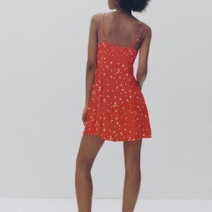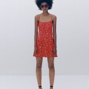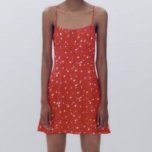 New without tag Zara Stars Spaghetti Straps Satin Red Mini Dress