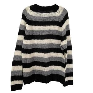 Black, white & gray stripes, relaxed crewneck, long sleeves, and ribbed cuffs. Soft alpaca blend, perfect for layering this fall/winter. Excellent condition!