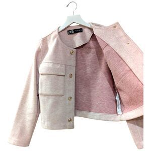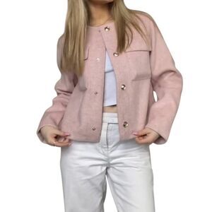 Zara Stockholm Spring Jacket Women's S Soft Pink & Gold Buttons