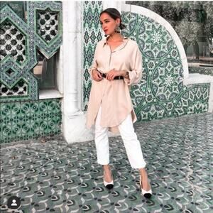 Zara Stone Oversized Linen Shirt size medium Blogger Favorite