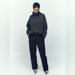 Zara Straight Fit Cargo Trousers Black NWT