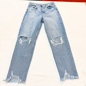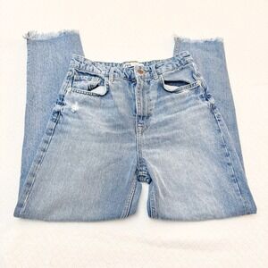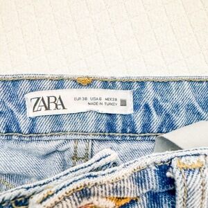 Zara Straight Leg Distressed Denim Jeans Raw Hem Size 08