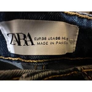 Zara Straight Leg High Rise Jeans Size 6 Denim Frayed Hem Casual Streetwear