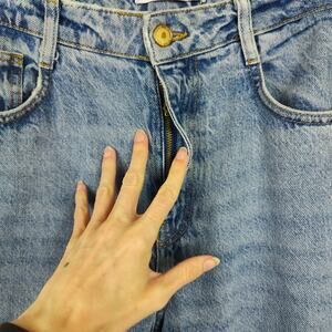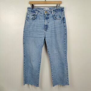 Zara Straight Leg Jeans Womens 10 Raw Hem High Rise Preppy Casual