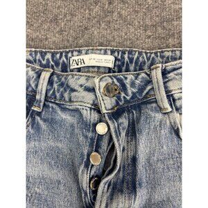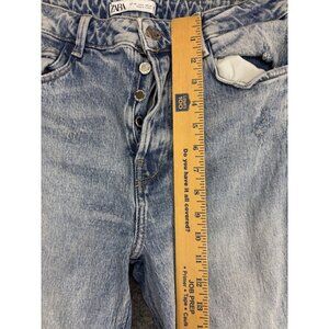 Zara Straight Leg Jeans Women's 6 Blue Denim Button Fly Raw Hem Light Wash