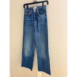 Zara Straight Leg Raw Hem Dark Denim Jeans, Size 0