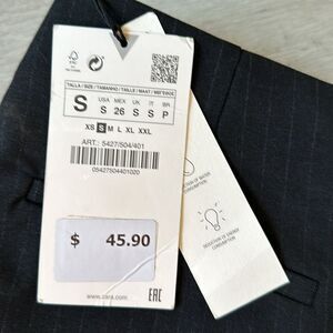 Zara Straight Leg pants w/back false welt pockets side zip blk pin stripe S Nwt