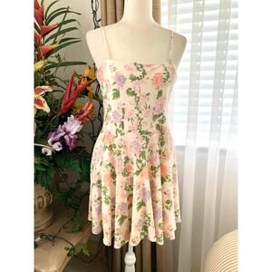 NWT Zara Straight Neckline Spaghetti Strap Floral Mini Dress in Cream