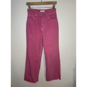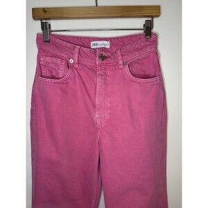 Zara Straight Pink Wide Leg Raw Hem Jeans High Rise Women’s 6