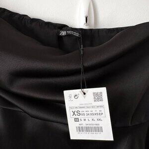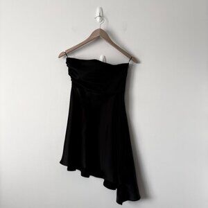Zara Strapless Asymmetrical Hem Satin Effect Mini Dress NWT Black Size XS