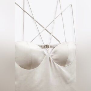 New with Tags ZARA Pearl Grey Mini Corset Strappy Satin Dress