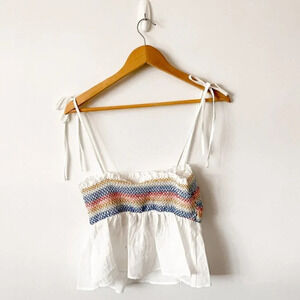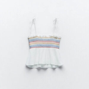Zara Strappy Elasticized Smocked Top Rainbow Ecru NWT Size XS