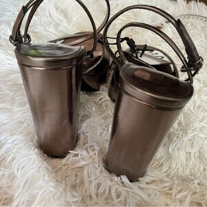 New Zara Strappy Platform Silver Metallic Block Heel Sandals Size 9