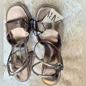 Zara Strappy Platform Silver Metallic Sandals | Size 9