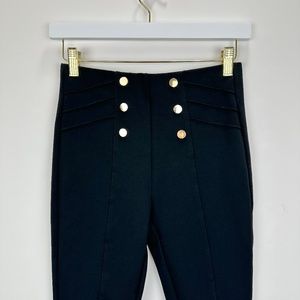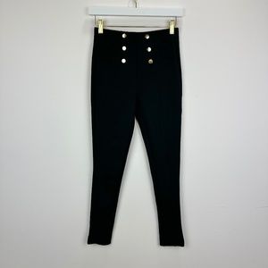 Zara Stretch Ponte Knit Pants Leggings Gold Buttons High Waist Womens Small.