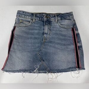 Zara Stripe Frayed Distressed Denim Mini Skirt Women's Size XS