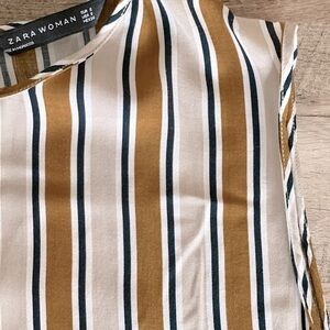 🌺 Zara Stripe Ruffle High Low Lightweight Tan Sleeveless Blouse Size S