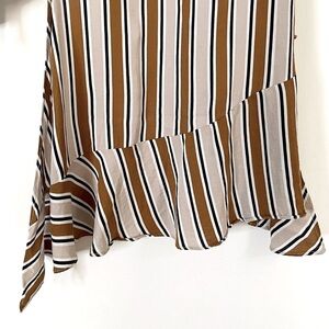 Zara Stripe Ruffle High Low Lightweight Tan Sleeveless Blouse Size S