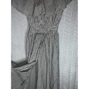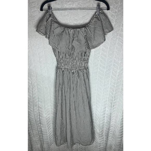 Zara Stripe Ruffled Off Shoulder Dress Smocked Waist Black White Size M