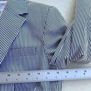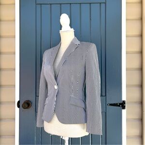 This Zara blazer combines a classic blue and white design with a tailored fit, making it ideal for professional settings.