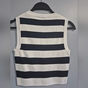 Zara Striped Blue and Cream summer euro boho beach sweater Tank Knit Top medium