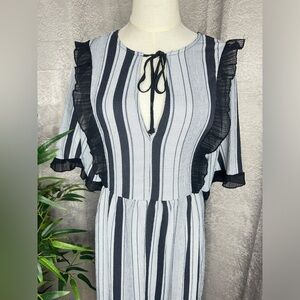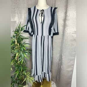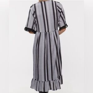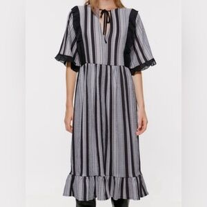 Zara Striped Contrasting Ruffle Textured Midi Dress in Black & White Sz S