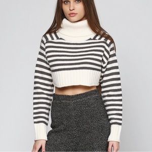 Zara Striped Cropped Chunky Knit Sweater (Gray and Cream White/ size Medium)