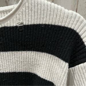 Zara Striped Cropped Distressed Boxy Oversized Sweater