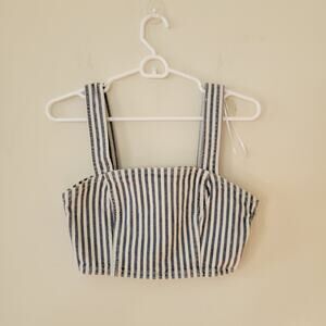 Zara Striped Denim Crop Top Blue & White Sleeveless Square Neck Size Blue/white striped. Wide straps. Denim. Thick knit. Crop top. Side zipper. Square neck. Boho. Retro. Nautical.