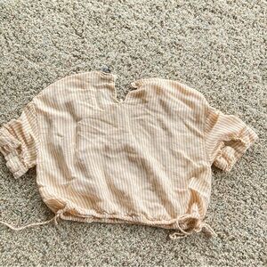 Zara Striped Gauze Side Tie Beachy Crop Top Orange/White Sz S
