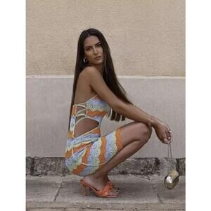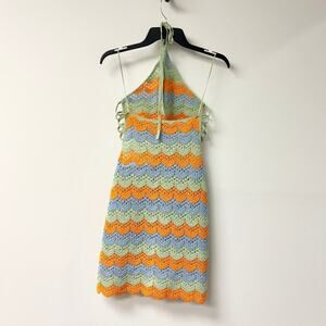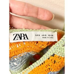 Zara Striped Halter Cut Out Crochet Limited Edition Mini Dress Multi Women's S
