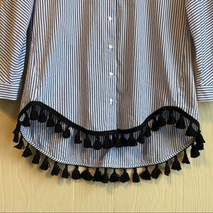 Zara Striped High Low Tassel Hem Button Down Shirt