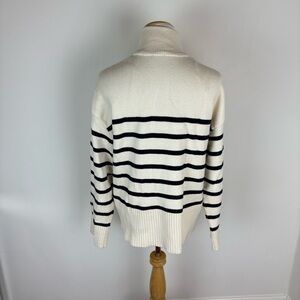 Zara Striped Knit Cardigan Zip Sweater in ivory/navy Size S