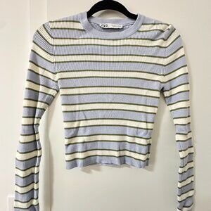 Zara Striped Knit Crewneck Top