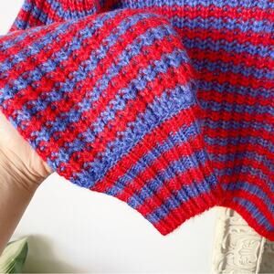 Zara Striped Knit Cropped Crewneck Sweater in blue and red.