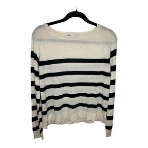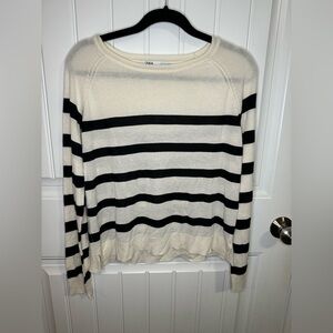 Stylish Zara sweater with black and cream stripes. Perfect for casual wear.