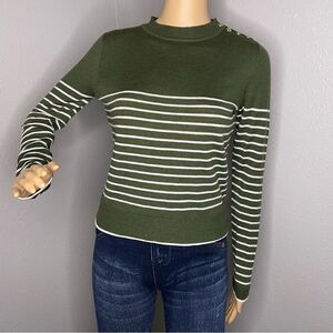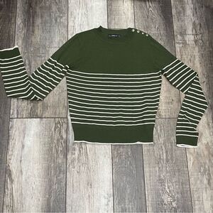 Zara Striped Lightweight Long Sleeve Sweater Green and White Size Small